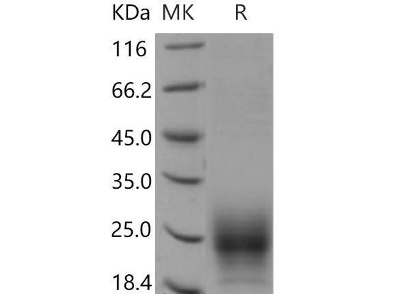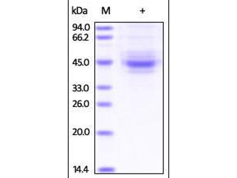 The purity of the protein is greater than 95 % as determined by SDS-PAGE and Coomassie blue staining.
