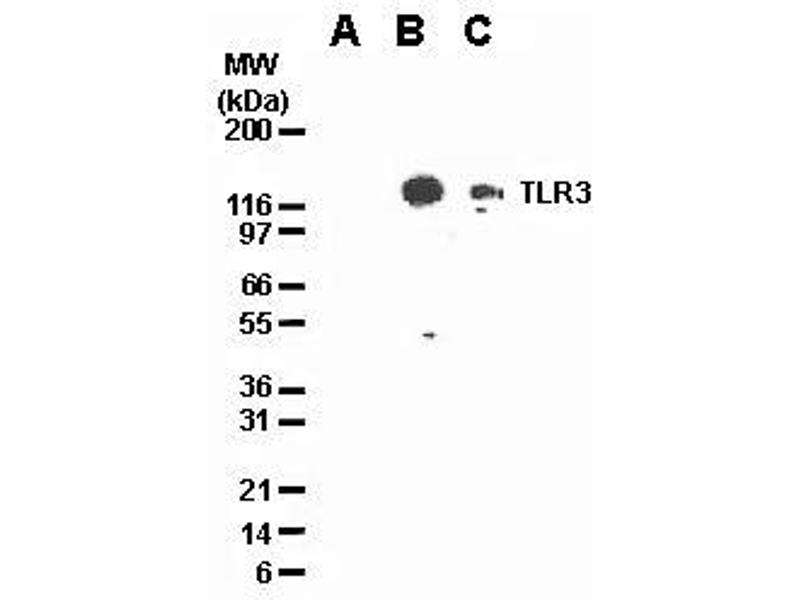 TLR3 适用: 人, 小鼠 WB, IF, EIA 宿主: 兔 Polyclonal unconjugated