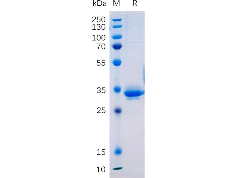 The purity of the protein is greater than 95 % as determined by SDS-PAGE and Coomassie blue staining.