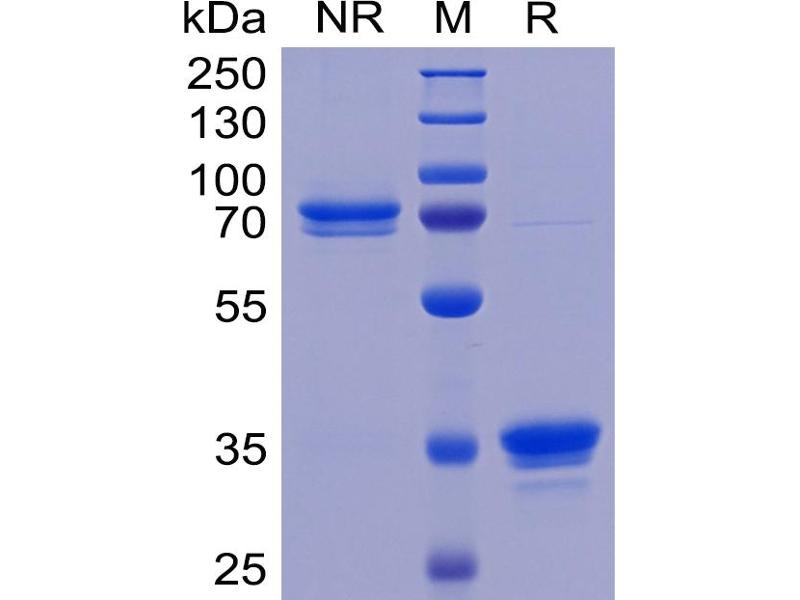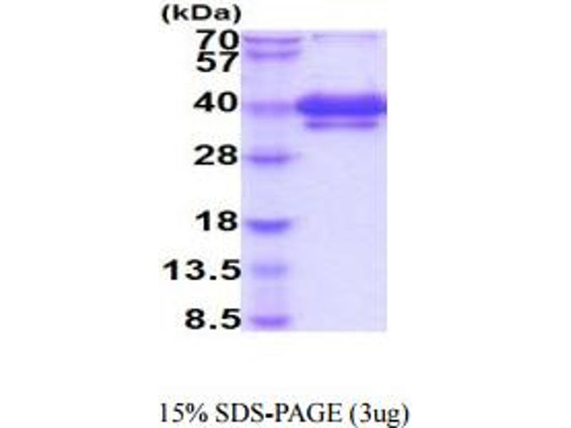 The purity of the protein is greater than 95 % as determined by SDS-PAGE and Coomassie blue staining.