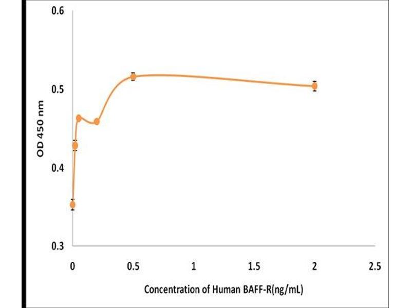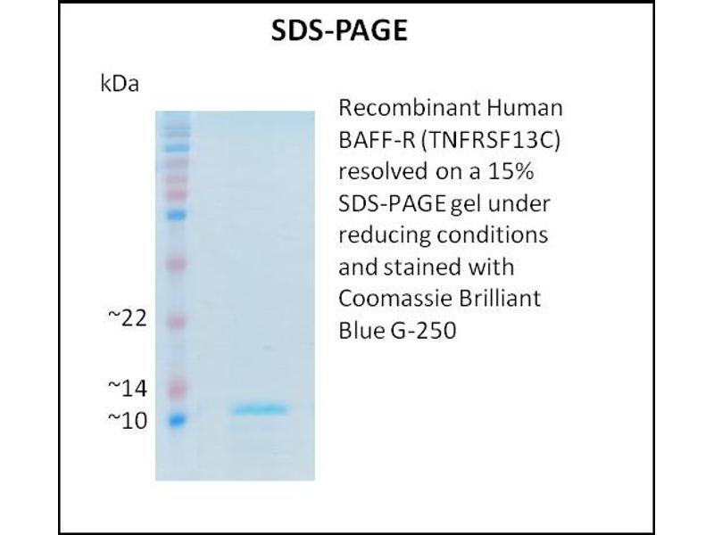 B cell-activating factor (BAFF) enhances B-cell survival in vitro and is a regulator of the peripheral B-cell population. Overexpression of Baff in mice results in mature B-cell hyperplasia and symptoms of systemic lupus erythematosus (SLE). Also, some SLE patients have increased levels of BAFF in serum. Therefore, it has been proposed that abnormally high levels of BAFF may contribute to the pathogenesis of autoimmune diseases by enhancing the survival of autoreactive B cells. The protein encoded by this gene is a receptor for BAFF and is a type III transmembrane protein containing a single extracellular cysteine-rich domain. It is thought that this receptor is the principal receptor required for BAFF-mediated mature B-cell survival. [provided by RefSeq, Jul 2008].