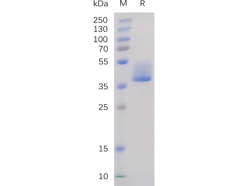 The purity of the protein is greater than 95 % as determined by SDS-PAGE and Coomassie blue staining.