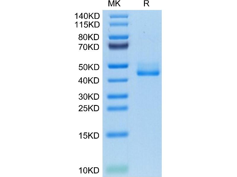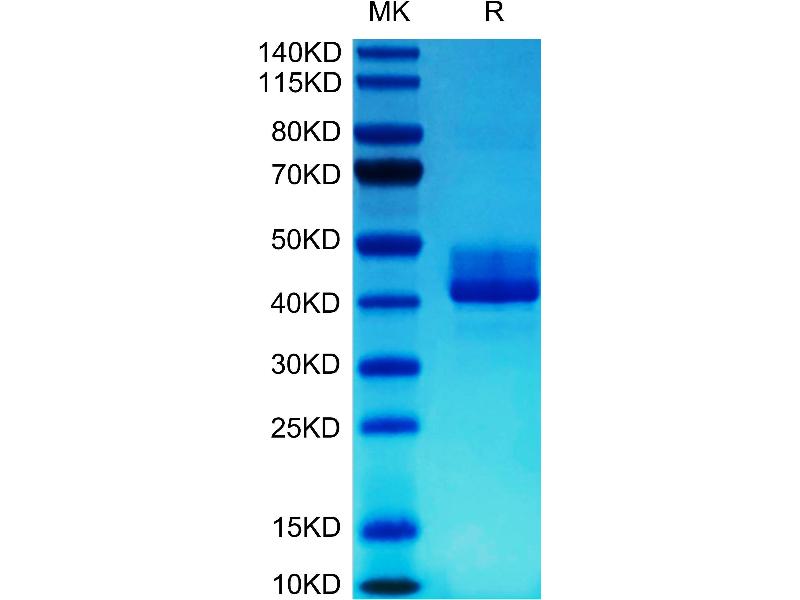 The purity of the protein is greater than 95 % as determined by SDS-PAGE and Coomassie blue staining.