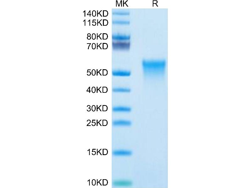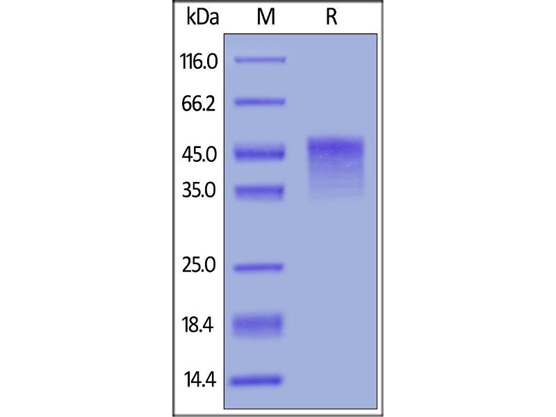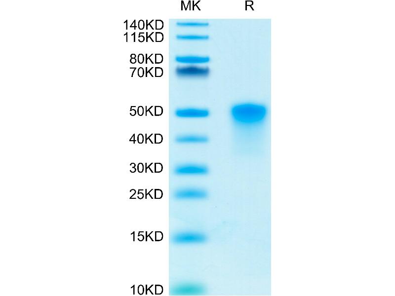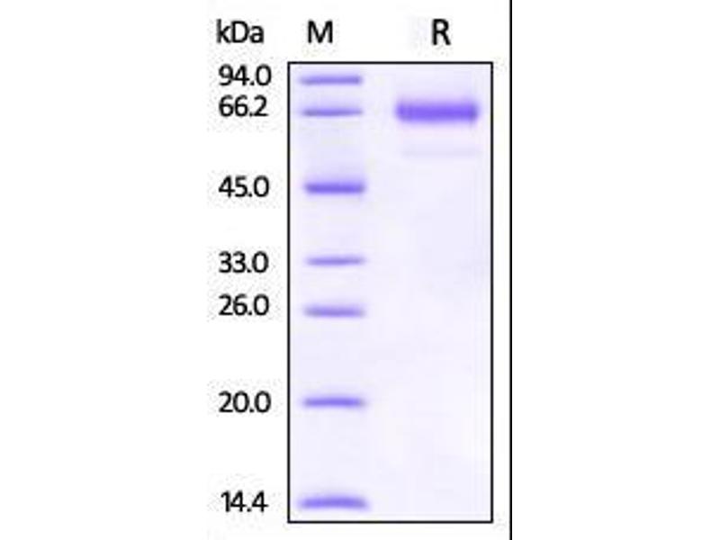 The purity of the protein is greater than 95 % as determined by SDS-PAGE and Coomassie blue staining.