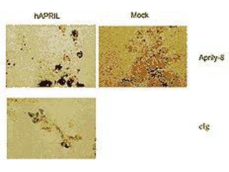 : "APRIL/TRDL-1, a tumor necrosis factor-like ligand, stimulates cell death." in: Cancer research, Vol. 60, Issue 4, pp. 1021-7, (2000) (PubMed).