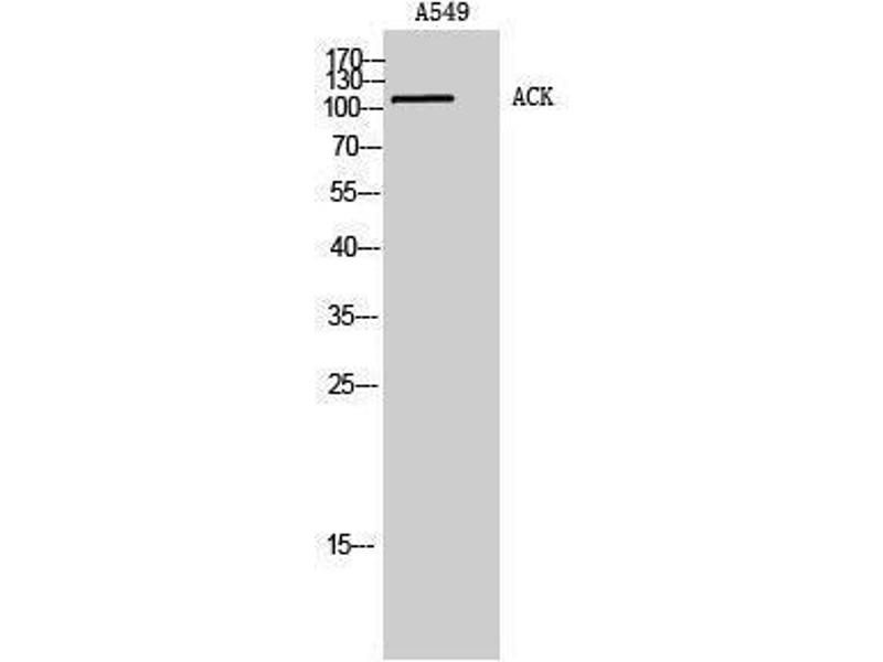 This gene encodes a tyrosine kinase that binds Cdc42Hs in its GTP-bound form and inhibits both the intrinsic and GTPase-activating protein (GAP)-stimulated GTPase activity of Cdc42Hs. This binding is mediated by a unique sequence of 47 amino acids C-terminal to an SH3 domain. The protein may be involved in a regulatory mechanism that sustains the GTP-bound active form of Cdc42Hs and which is directly linked to a tyrosine phosphorylation signal transduction pathway. Several alternatively spliced transcript variants have been identified from this gene, but the full-length nature of only two transcript variants has been determined. [provided by RefSeq, Jul 2008].