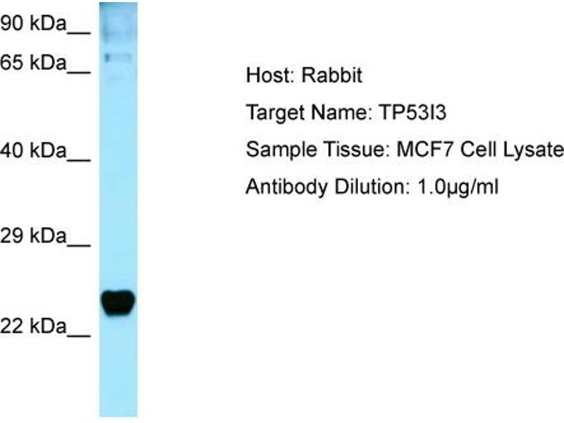 The protein encoded by this gene is similar to oxidoreductases, which are enzymes involved in cellular responses to oxidative stresses and irradiation. This gene is induced by the tumor suppressor p53 and is thought to be involved in p53-mediated cell death. It contains a p53 consensus binding site in its promoter region and a downstream pentanucleotide microsatellite sequence. P53 has been shown to transcriptionally activate this gene by interacting with the downstream pentanucleotide microsatellite sequence. The microsatellite is polymorphic, with a varying number of pentanucleotide repeats directly correlated with the extent of transcriptional activation by p53. It has been suggested that the microsatellite polymorphism may be associated with differential susceptibility to cancer. Alternatively spliced transcript variants encoding different isoforms have been found for this gene. [provided by RefSeq, May 2011].
