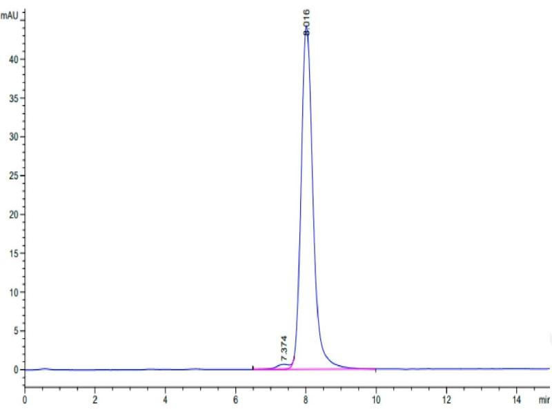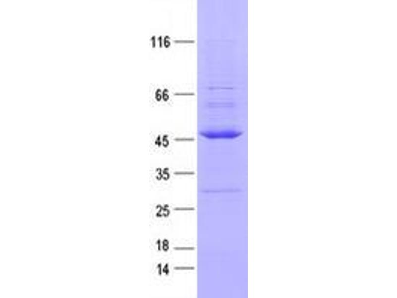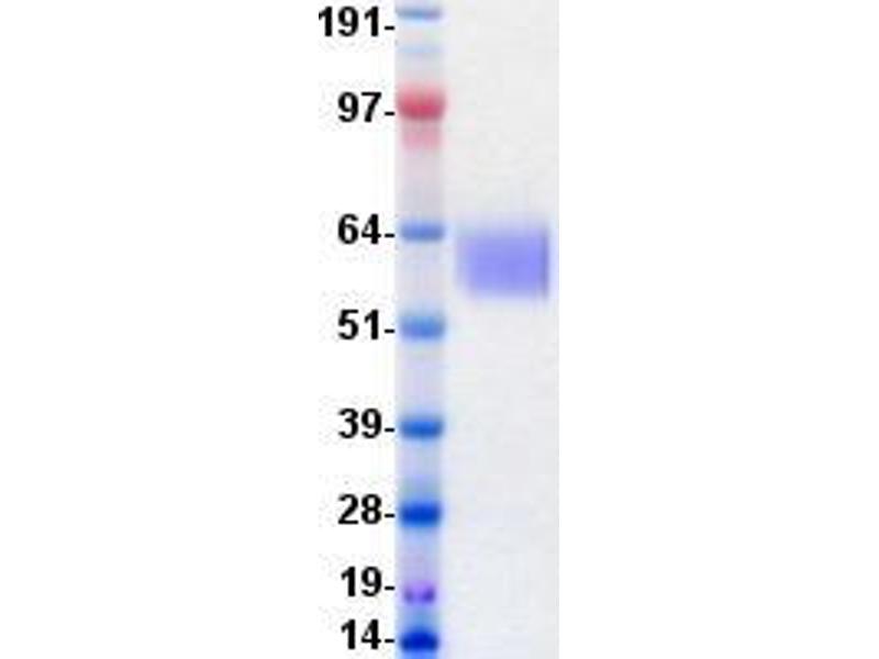 The purity of the protein is greater than 95 % as determined by SDS-PAGE and Coomassie blue staining.