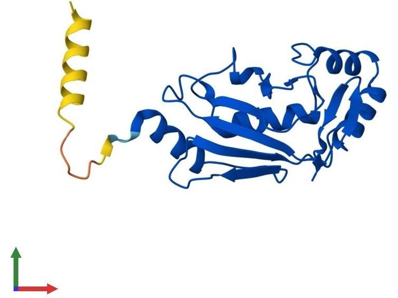 The modification of proteins with ubiquitin is an important cellular mechanism for targeting abnormal or short-lived proteins for degradation. Ubiquitination involves at least three classes of enzymes: ubiquitin-activating enzymes, or E1s, ubiquitin-conjugating enzymes, or E2s, and ubiquitin-protein ligases, or E3s. This gene encodes a member of the E2 ubiquitin-conjugating enzyme family. The encoded protein is linked with a ubiquitin-like protein, NEDD8, which can be conjugated to cellular proteins, such as Cdc53/culin. [provided by RefSeq, Jul 2008].