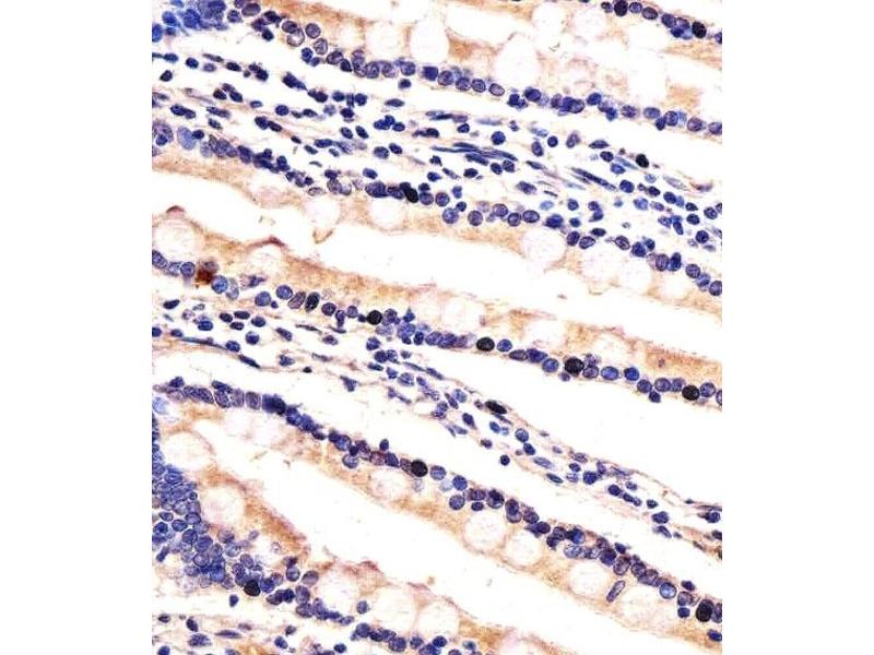 UBE2K 适用: 大鼠 WB, ELISA, IHC (p), IF (cc), IF (p), IHC (fro) 宿主: 兔 Polyclonal unconjugated