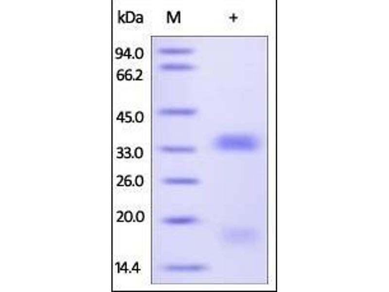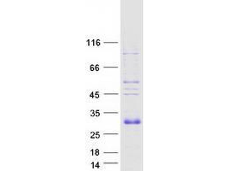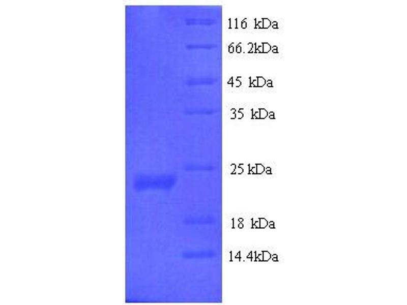 The purity of the protein is greater than 95 % as determined by SDS-PAGE and Coomassie blue staining.