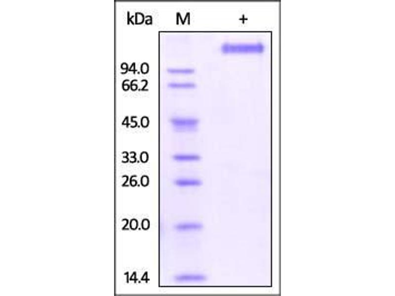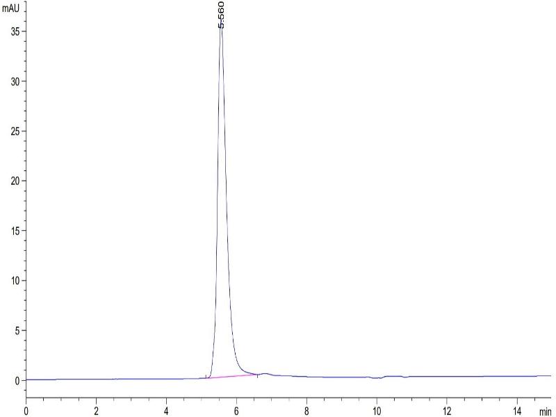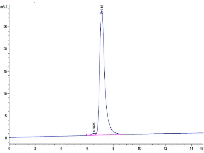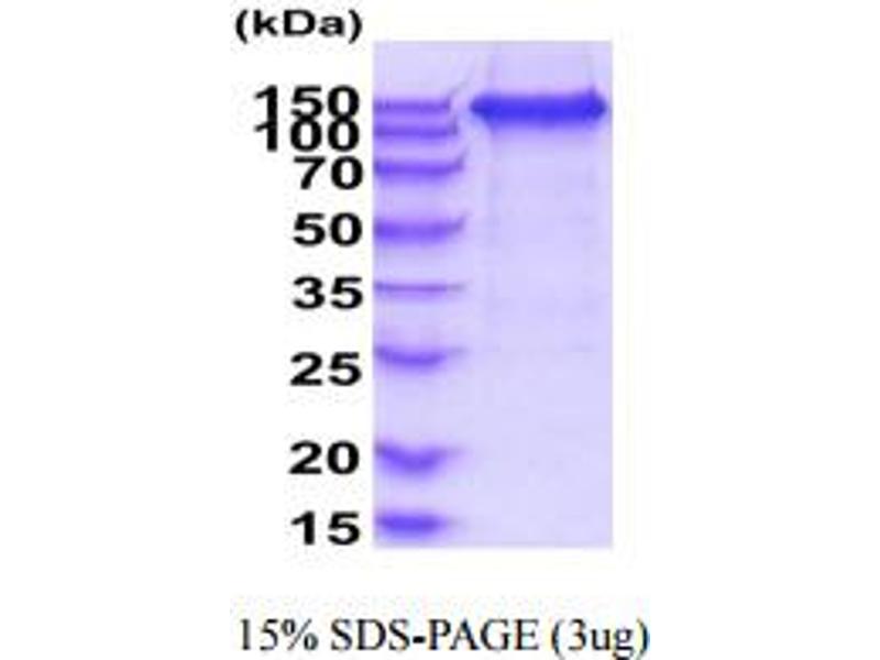 The purity of the protein is greater than 95 % as determined by SDS-PAGE and Coomassie blue staining.