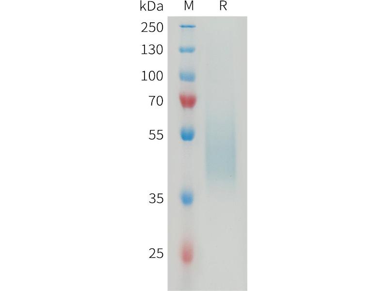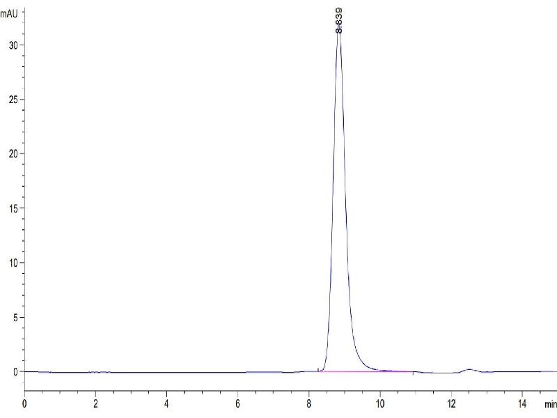 The purity of the protein is greater than 95 % as determined by SDS-PAGE and Coomassie blue staining.