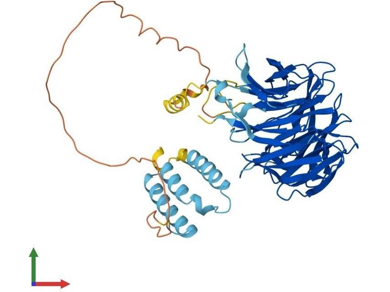 This gene encodes a member of the WD repeat protein family. WD repeats are minimally conserved regions of approximately 40 amino acids typically bracketed by Gly-His and Trp-Asp (GH-WD), which may facilitate formation of heterotrimeric or multiprotein complexes. Members of this family are involved in a variety of cellular processes, including cell cycle progression, signal transduction, apoptosis, and gene regulation. This gene is widely expressed in various tissues. Multiple alternatively spliced transcript variants have been described for this gene. [provided by RefSeq, Oct 2009].