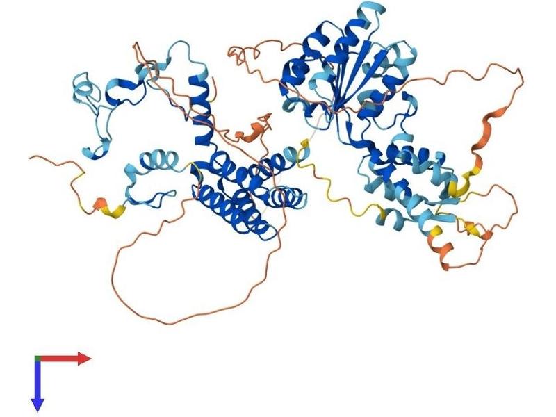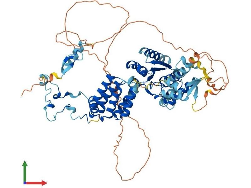 Werner's syndrome is a rare autosomal recessive disorder characterized by accelerated aging that is caused by defects in the Werner syndrome ATP-dependent helicase gene (WRN). The protein encoded by this gene interacts with the exonuclease-containing N-terminal portion of the Werner protein. This protein has a ubiquitin-binding zinc-finger domain in the N-terminus, an ATPase domain, and two leucine zipper motifs in the C-terminus. It has sequence similarity to replication factor C family proteins and is conserved from E. coli to human. This protein likely accumulates at sites of DNA damage by interacting with polyubiquinated proteins and also binds to DNA polymerase delta and increases the initiation frequency of DNA polymerase delta-mediated DNA synthesis. This protein also interacts with nucleoporins at nuclear pore complexes. Two transcript variants encoding different isoforms have been isolated for this gene. [provided by RefSeq, Jul 2012].