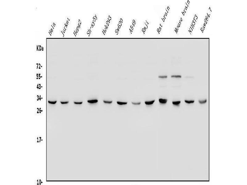 YWHAE 适用: 人, 小鼠, 大鼠 WB, IHC, IF, ICC, FACS 宿主: 兔 Monoclonal HHD-25 unconjugated